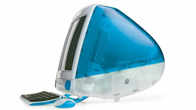 O seu formato redondo, translúcido, com metade da estrutura pintada de azul, destacava-se no mar de PC Windows de caixa quadrada bege. Foi também o primeiro a ser lançado sem unidade para disquete e por incrível que te pareça estava equipado com USB.
