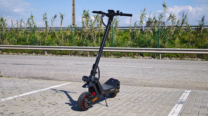 Fora do alcatrão e nas vias urbanas, esta trotinete revela-se uma autêntica fera. O sistema que envolve o duplo motor debita a já referida potência de pico de 2400W, permitindo-te atacar e dominar facilmente colinas com inclinações exigentes na ordem dos 20 graus. Logo no arranque sentes que está ali um potencial enorme à espera de ser libertado.