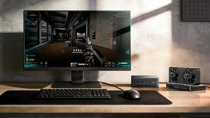 Apesar do tamanho reduzido, o mini PC integra os novos processadores Intel Core Ultra (Lunar Lake), com versões que vão até ao Core Ultra 7 256V.