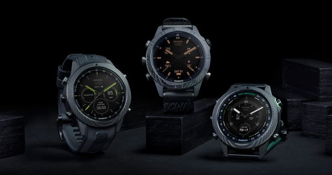 A coleção MARQ Carbon destaca a paixão da Garmin pelo design requintado. Cada peça tem um chassi de 46mm e incrustação e molduras maquinadas a partir de 130 camadas de fibra de carbono fundido, tornando-a a coleção MARQ mais leve até à data. Para criar o corpo do relógio, cada camada de carbono é rodeada para um ângulo único, fortalecendo o bloco inicial. Este bloco é então submetido a calor e pressão, moldando-se à forma da caixa do relógio. Várias horas de produção com ferramentas de corte de diamante de precisão resultam numa superfície com um padrão de design espiral belo e robusto.