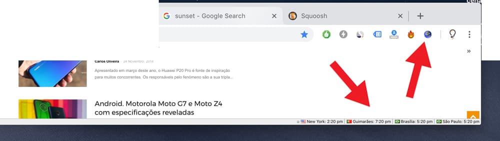 Dessa forma, as horas aparecerão não apenas quando clicas no ícone, mas também na parte inferior do browser. Ou seja, tens aqui uma solução simples e fácil para saberes que horas são nos teus locais preferidos.