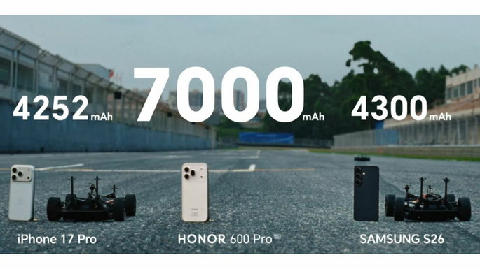 Num golpe criativo inesperado, a Honor removeu a bateria de 7.000 mAh do seu telefone 600 e instalou a unidade num carro miniatura telecomandado. De seguida, fez o mesmo com a bateria de 4.252 mAh do iPhone 17 Pro e também com a unidade de 4.300 mAh do Samsung Galaxy S26.