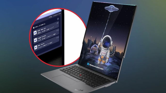 Segundo as fugas de informação, este segundo visor pode apresentar conteúdos do ecrã principal, incluindo o chatbot de IA da Lenovo, notificações de calendário e até interfaces que parecem ser do Microsoft Teams.