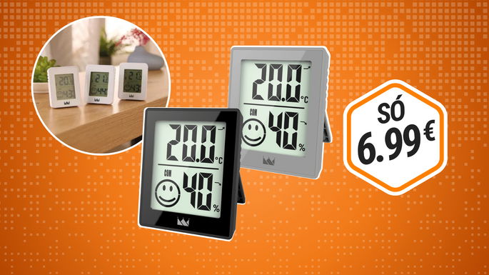 Este é um gadget útil para teres sempre à mão. O conjunto de higrómetros KRONTALER® ajuda-te a acompanhar a percentagem de humidade e a temperatura ambiente em casa. Por apenas 6,99 €, levas logo 3 unidades. Disponível no ALDI a partir de 11/02, com 3 anos de garantia.