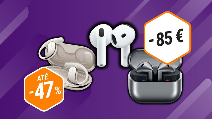Na loja, os Samsung Galaxy Buds3 com ANC e Galaxy AI surgem por 94,99 €, o que representa um desconto de 47% face ao preço recomendado de 179,00 €. Já os Xiaomi OpenWear Stereo aparecem por 84,00 €, menos 30% relativamente aos 119,50 € habituais. Por fim, os Apple AirPods 4 (4.ª geração) podem ser encontrados por 115,00 €, uma redução de 42% face ao preço recomendado de 199,00 €.